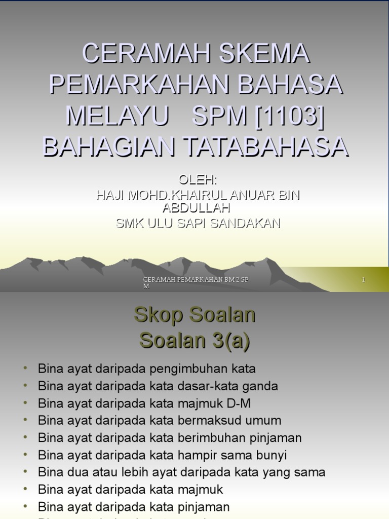 From tata (arrangement, order) + bahasa (language). Latihan tatabahasa bahasa inggeris peringkat tinggi dalam artikel ini akan membantu anda belajar topik tatabahasa baru yang rumit untuk terus meningkatkan tahap kefasihan berbahasa inggeris anda. Grammar, grammatical, vocabularies, perfect gerund, the grammarian. Need the translation of tatabahasa in english but even don't know the meaning? Tatabahasa pilih jawapan yang betul. Examples of translating «tatabahasa» in context Tiga puluh soalan akan tiba kepada anda untuk menguji tahap tatabahasa bahasa inggeris anda. Ilmu ini merupakan sebahagian daripada bidang ilmu yang mempelajari bahasa iaitu linguistik. All of this have a same meaning in english but this have to use in the different time, person and situation. And now we learn about a very simple and basic thing for grammar (tatabahasa). • corrected mistakes in notes • added mistake. Learn vocabulary, terms and more with flashcards, games and other study tools. If you want to learn tatabahasa in english, you will find the translation here, along with other translations from indonesian to english.